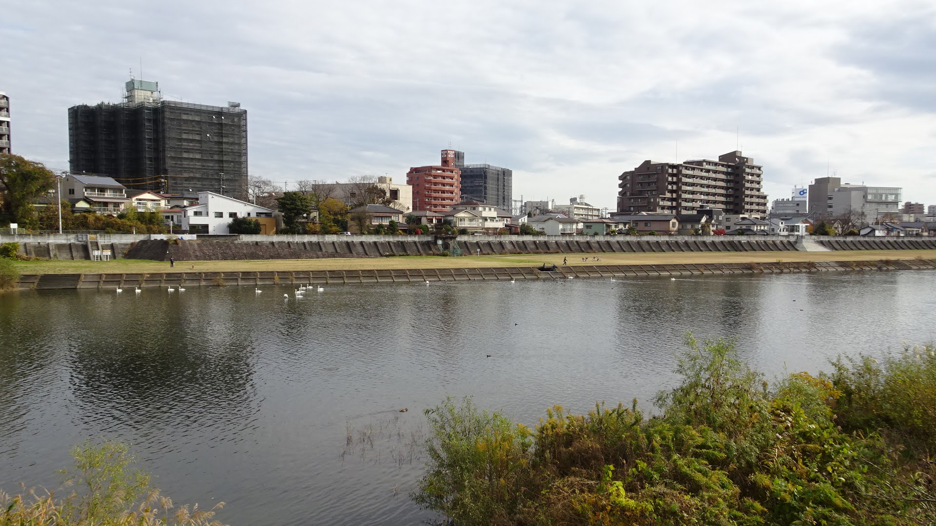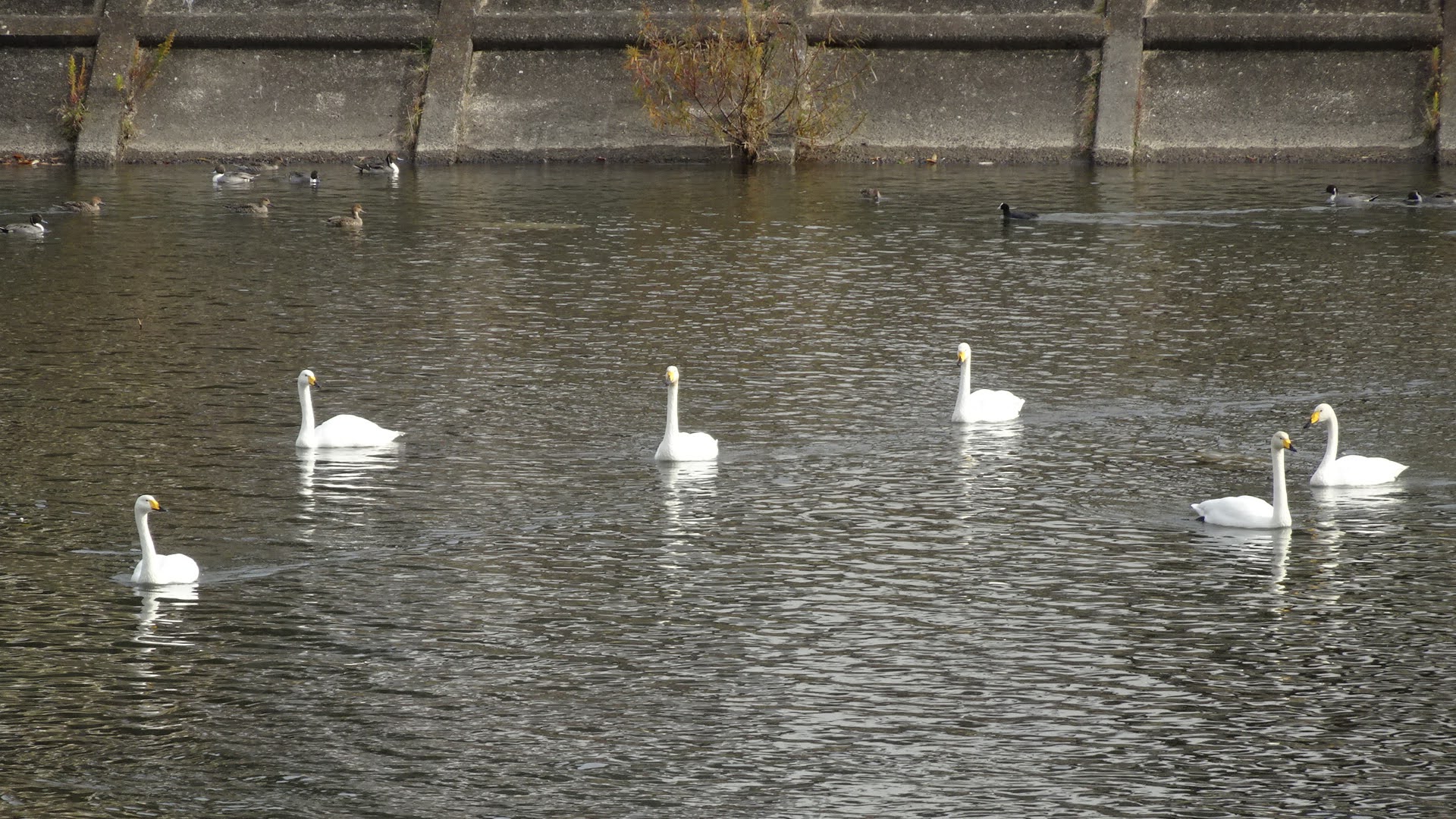 11月の下旬の時点でこのあたりには18羽の集団がいた。少し下流に5羽おり、全部で23羽。